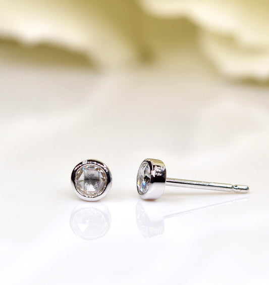 Petite Rose-cut Diamond Studs in White Gold
