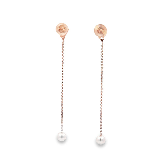 Akoya Pearl Drop Earrings with Square Stud Top in Rose Gold