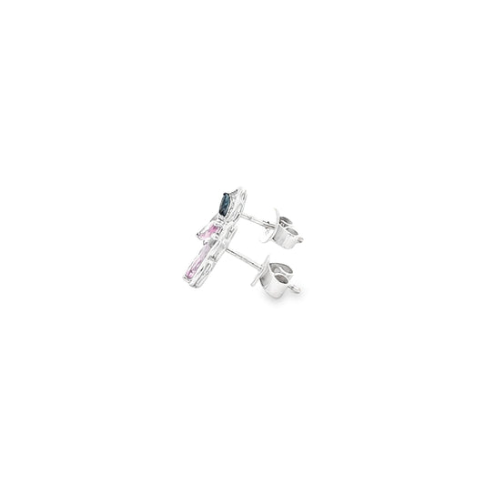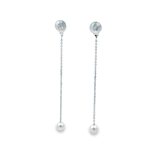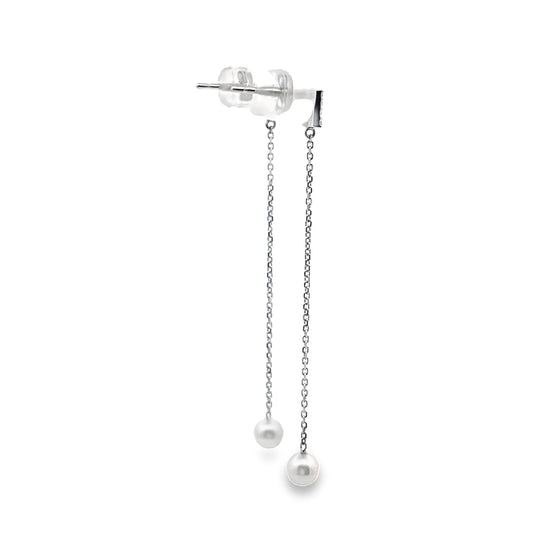 Akoya Pearl Drop Earrings with Square Stud Top in White Gold