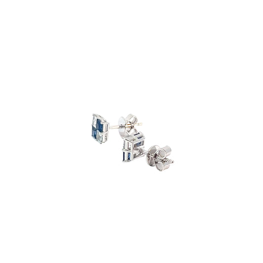 Blue and White Sapphire Checkers Earrings