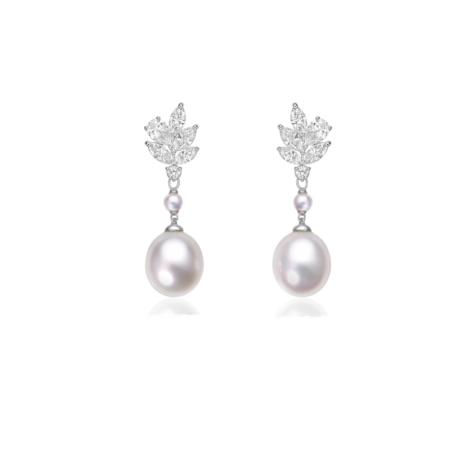 By detaching the bottom pearl drops, the earrings transform into a pair of sparkling diamond dangle earrings. Great for evening gown.
