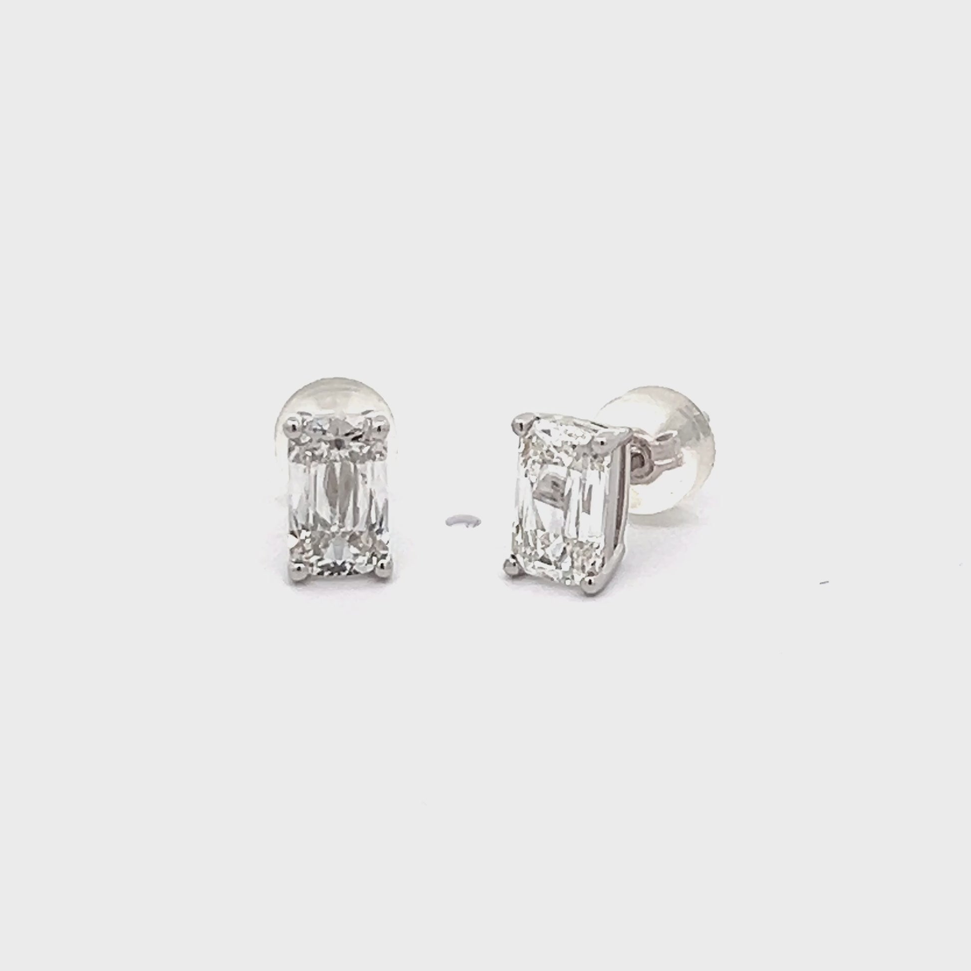Discover a modern classic with these platinum stud earrings. They feature pristine radiant-cut diamonds, whose open, step-cut facets produce a sophisticated and scintillating flash of light. The timeless platinum setting underscores a design that is both minimalist and impactful, making them a versatile and enduring addition to any discerning jewellery collection.