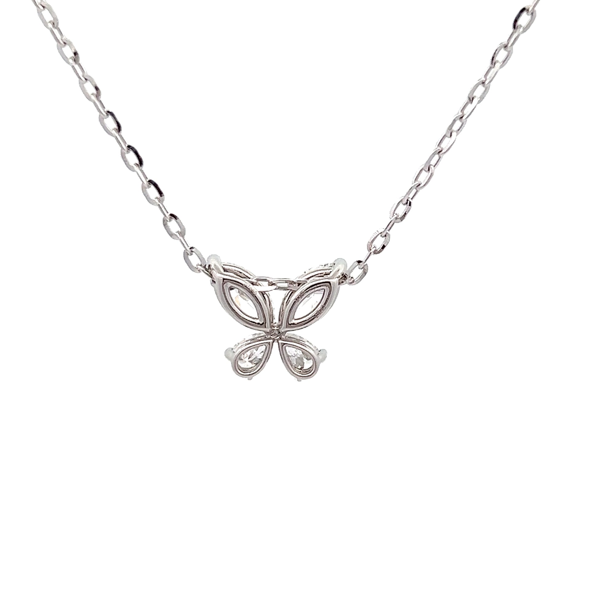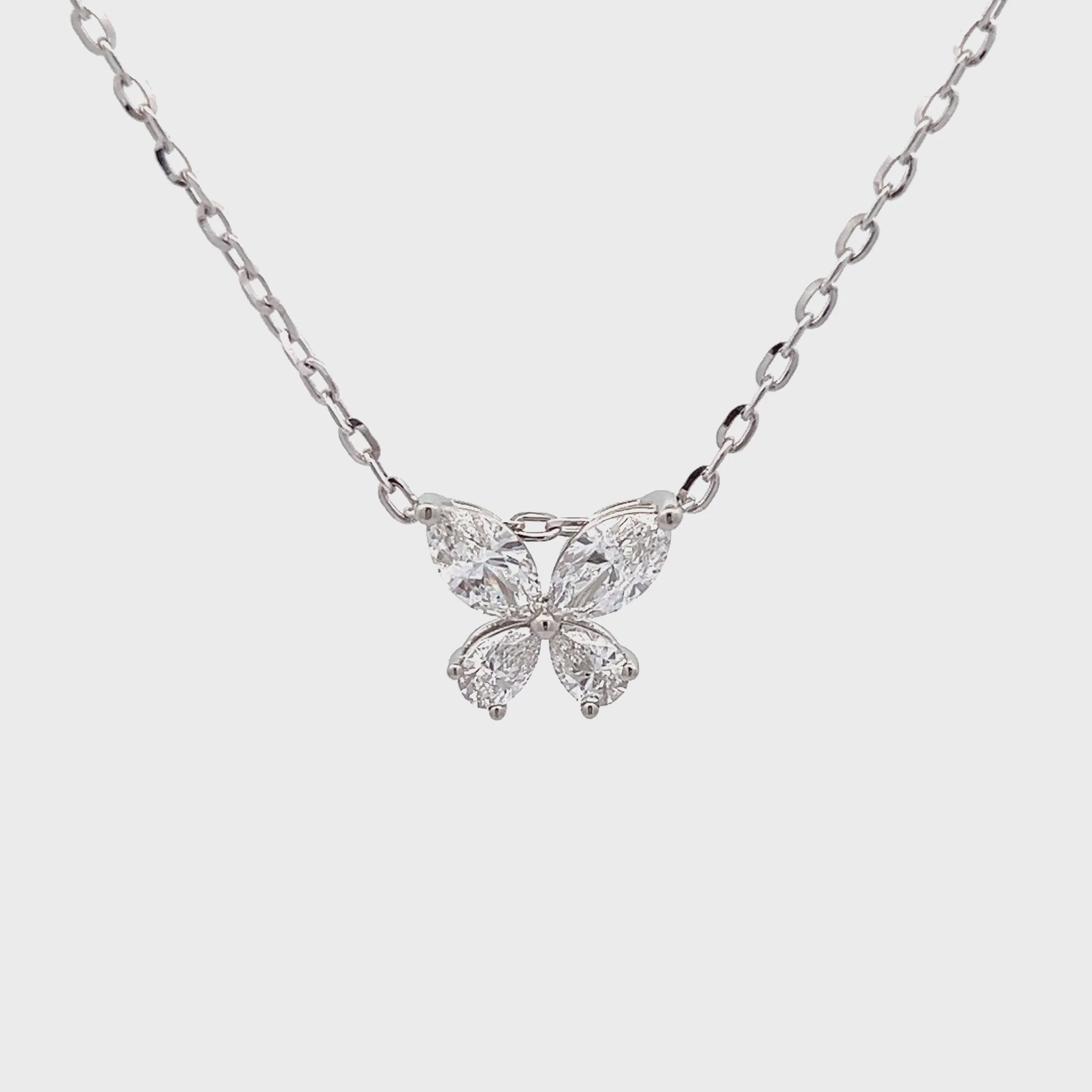 Butterfly necklace set with 2 marquise and 2 pear shape lab-grown diamonds total 1.50ct in platinum, with 18K white gold plated silver chain