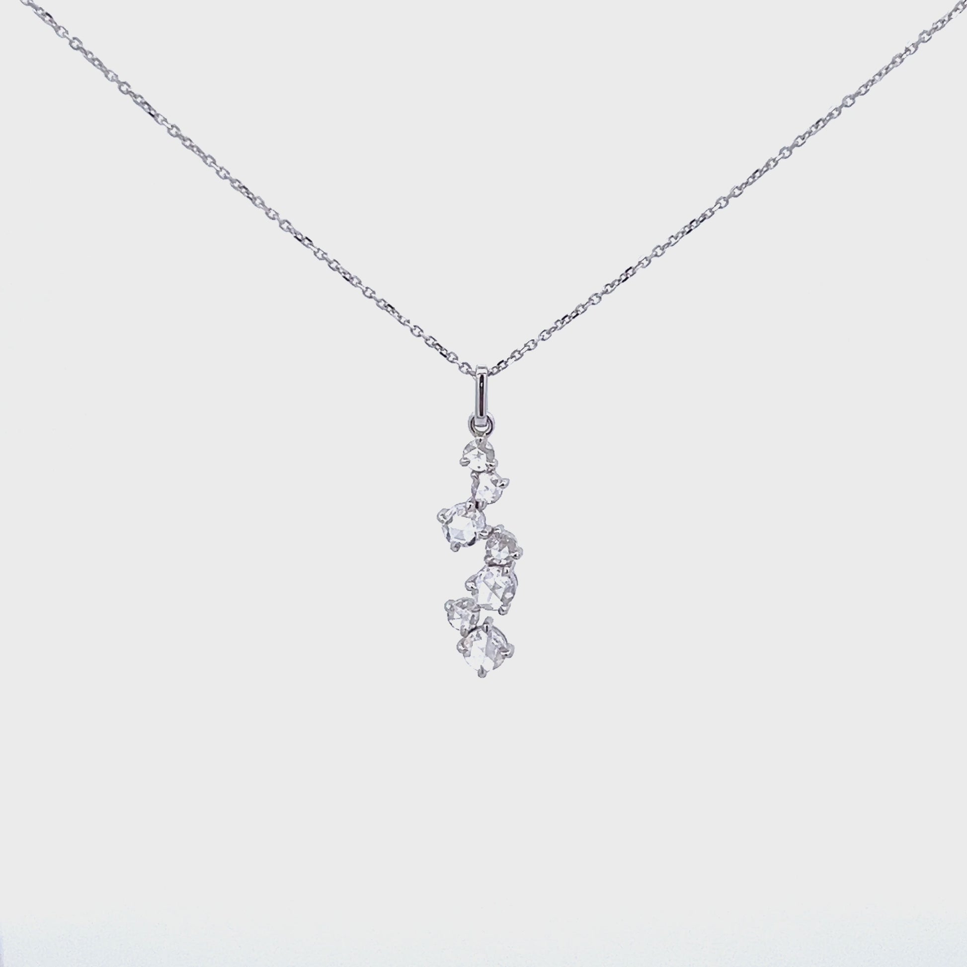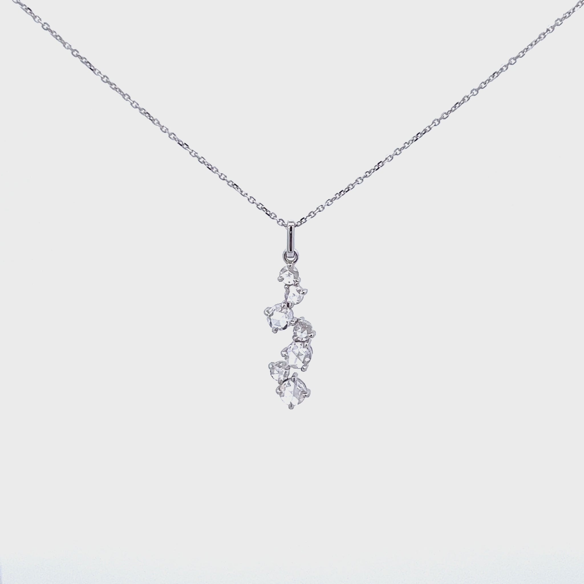 A vision of sophistication, this pendant features a cascade of shimmering rose-cut diamonds that dance with light. Each stone is meticulously set to create an enchanting flow that captures the essence of elegance.