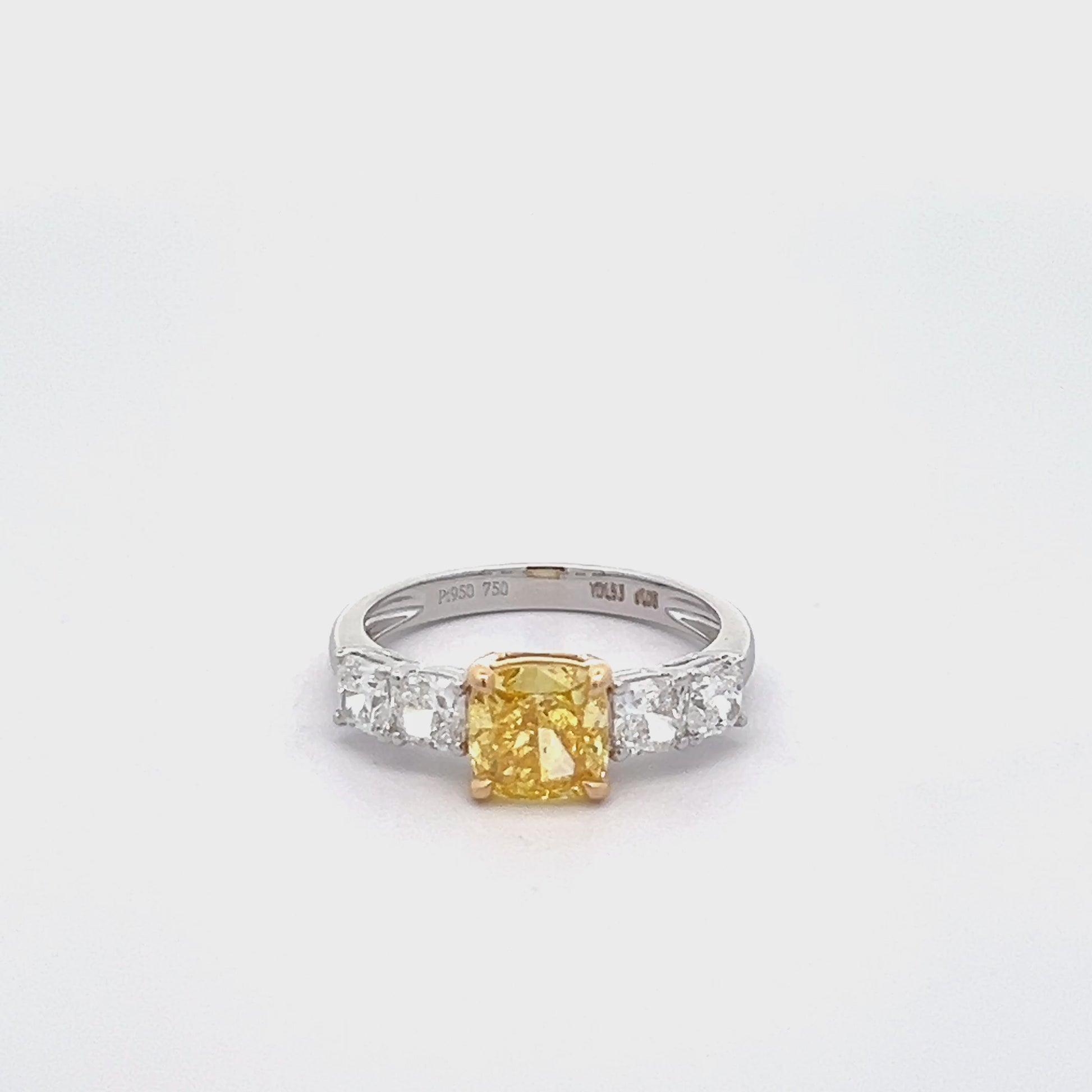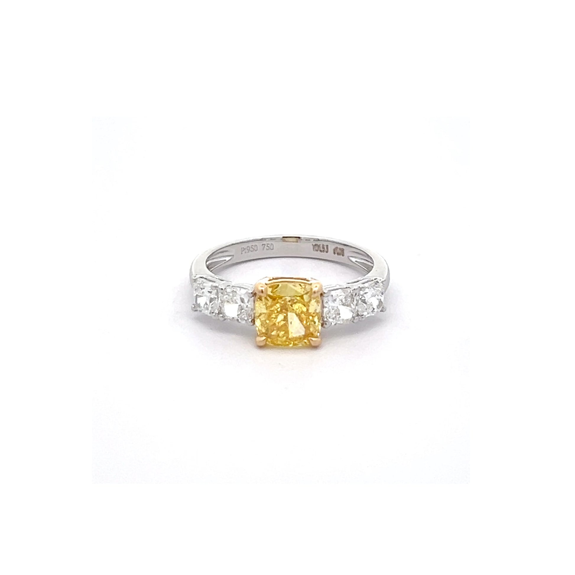 Yellow Cushion 1.53ct Lab-grown Diamond Ring in Platinum