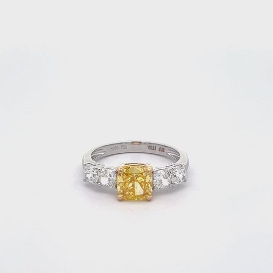 Yellow cushion 1.53ct lab-grown diamond ring set with four cushion lab-grown diamonds total 1.08ct set in platinum and 18K yellow gold