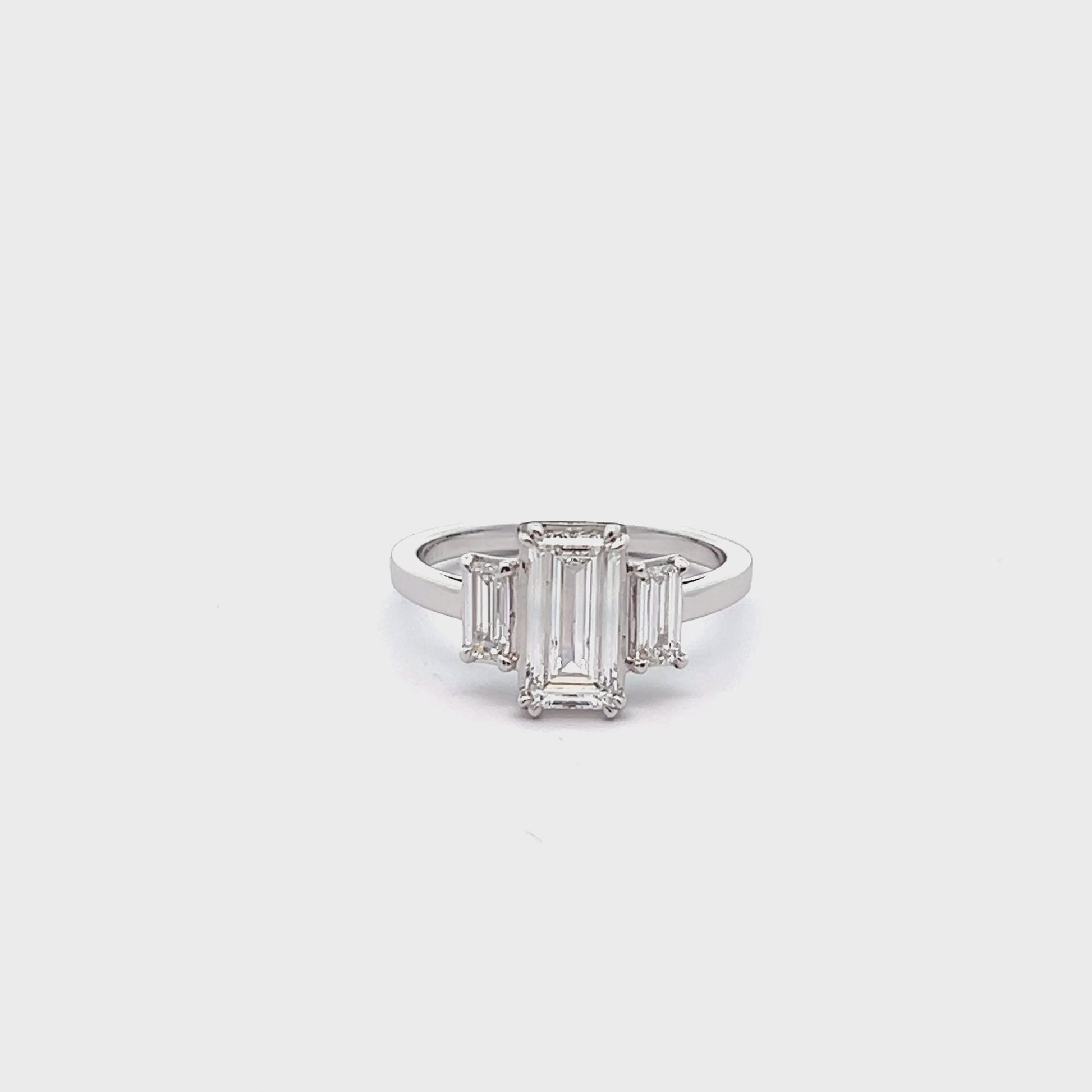 Long Baguette 1.56ct Lab-grown Three-stone Diamond Ring in Platinum