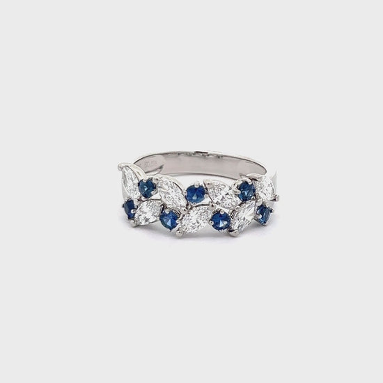 Marquise lab-grown diamond and sapphire ring set with seven marquise lab-grown diamonds total 1.06ct and seven sapphire total 0.58 in platinum