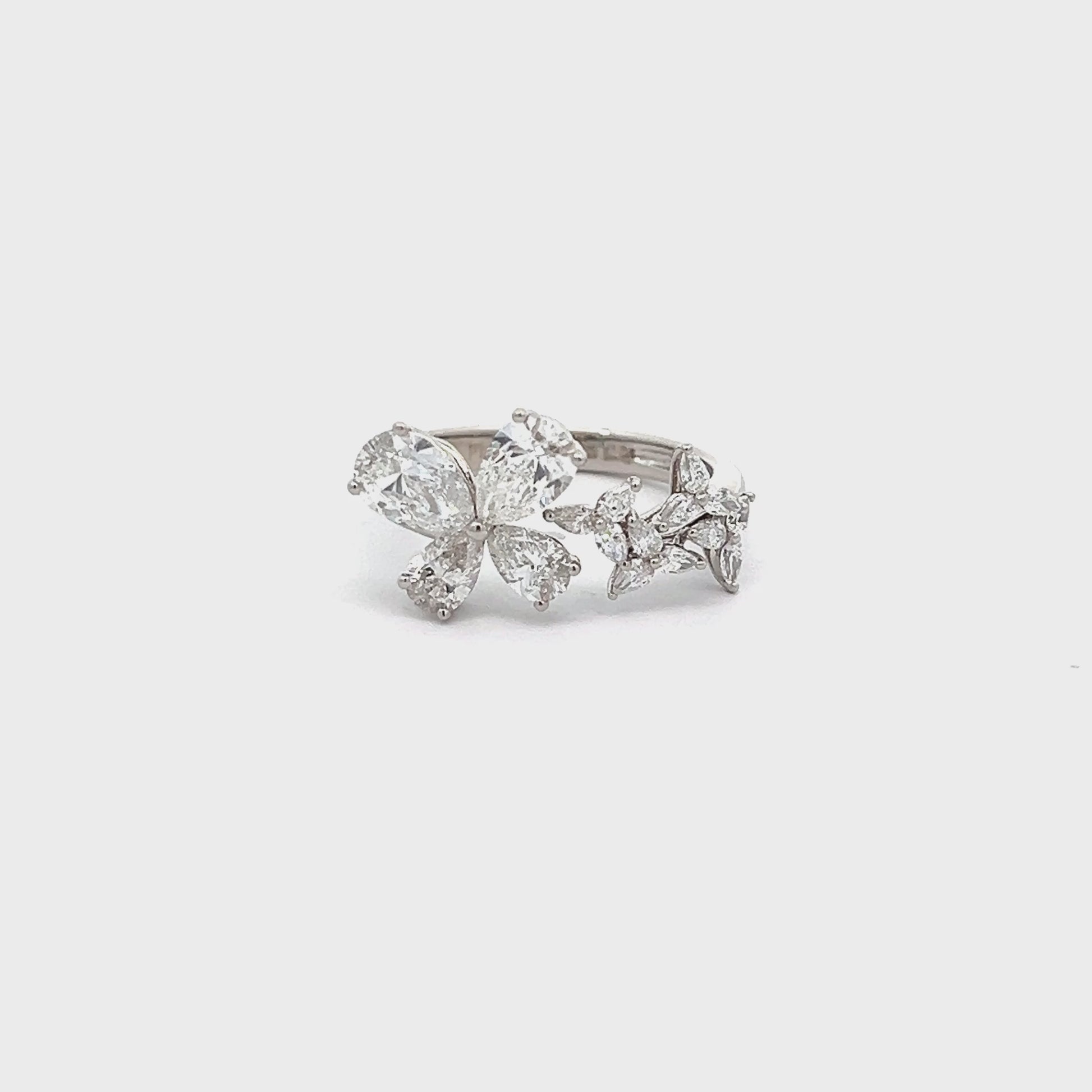 Butterfly Dance Ring with Pear Shape Lab-grown Diamonds in Platinum