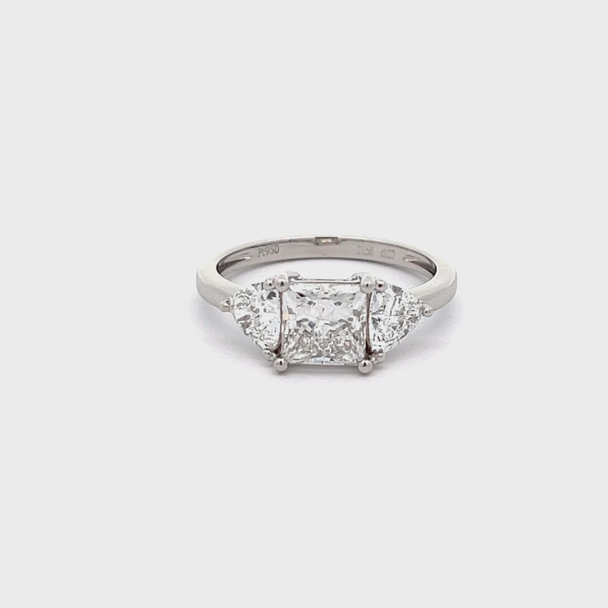 Princess cut 1.58ct lab-grown diamond ring set with two trillion lab-grown diamonds total 1.02ct set in platinum