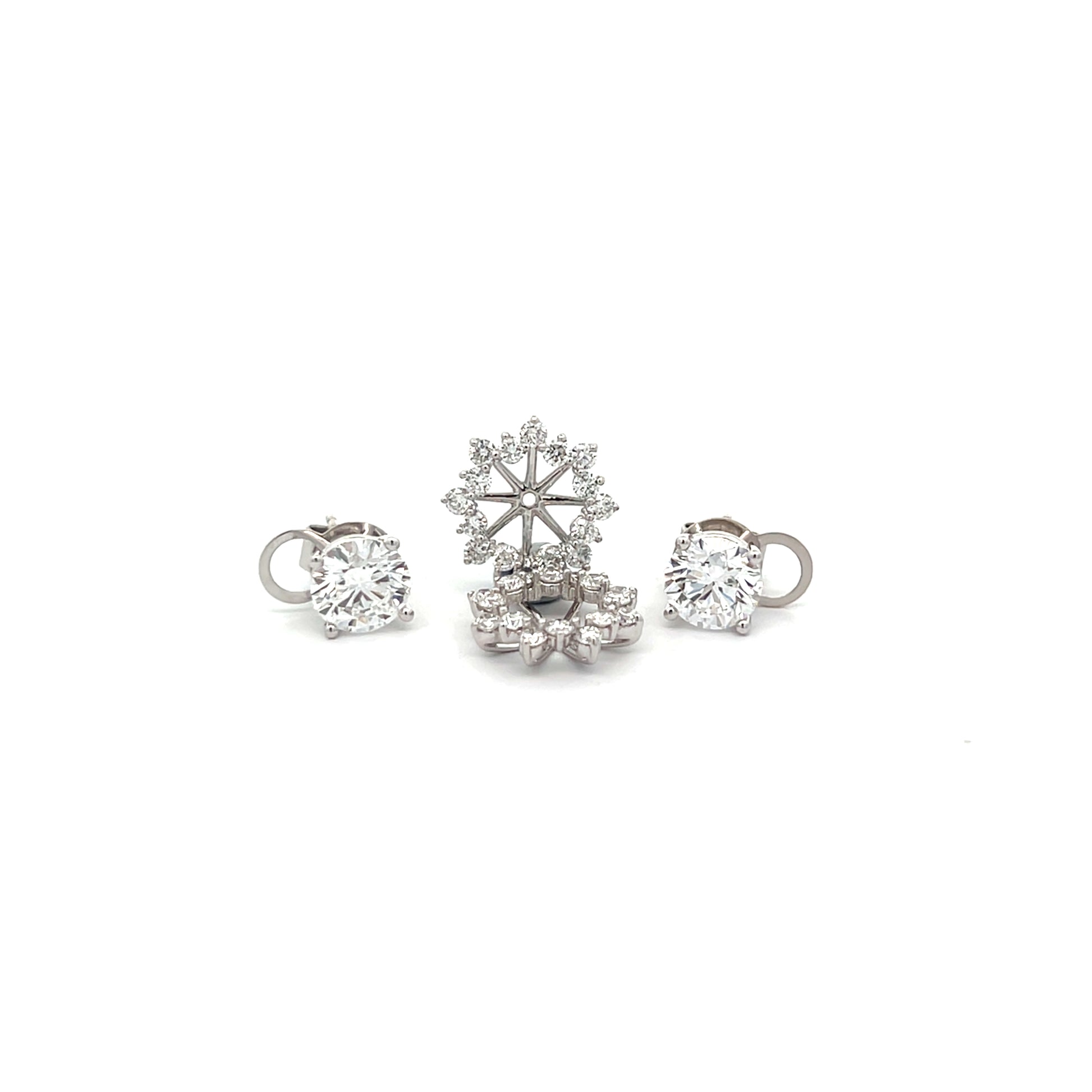 Discover unparalleled versatility with these stunning, high-quality stud earrings. At their heart, the brilliant solitaire stones offer a perfect touch of everyday elegance. Then, for a dramatic transformation, simply add the removable jackets to create a dazzling statement piece for evening. This ingenious design ensures you're impeccably accessorized for any moment, effortlessly turning heads from day to night.