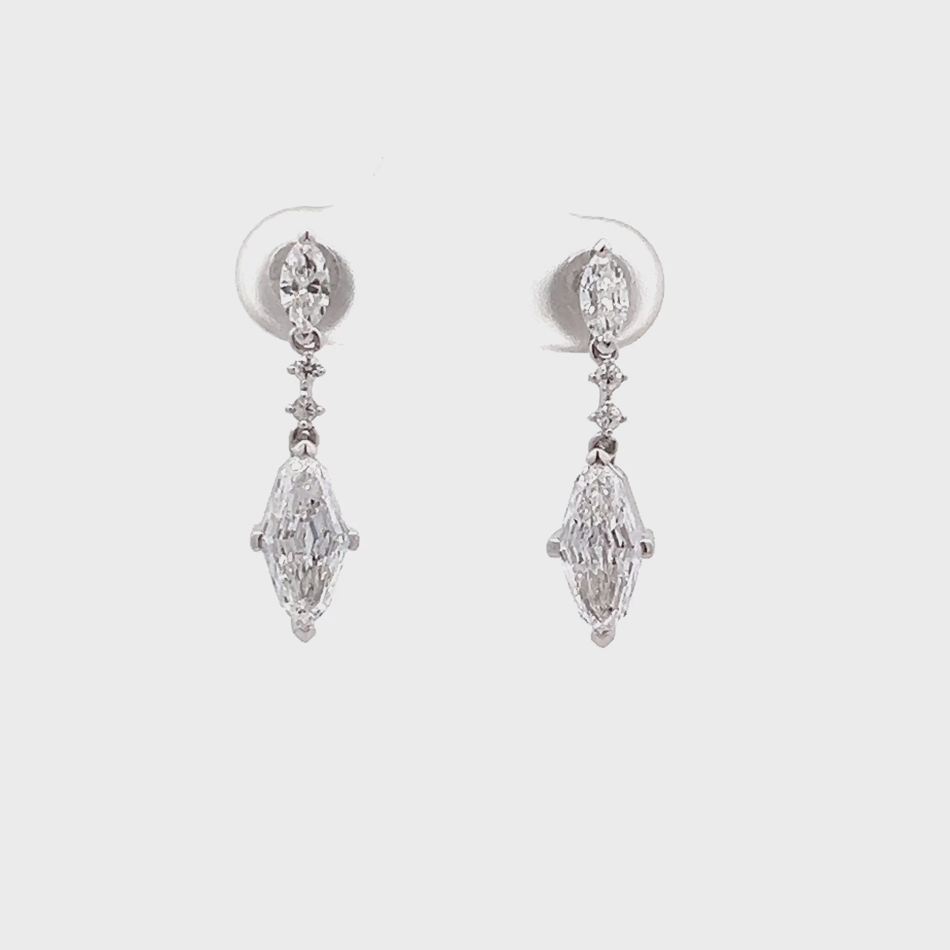 Step Marquise lab-grown diamond earrings (D-F/VVS) total 2.06ct set with two marquise and four round lab-grown diamonds total 0.37ct set in platinum