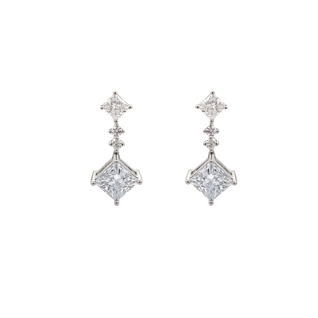 Princess cut lab-grown diamond earrings total 2.18ct set with two princess and four round lab-grown diamonds total 0.64ct set in platinum