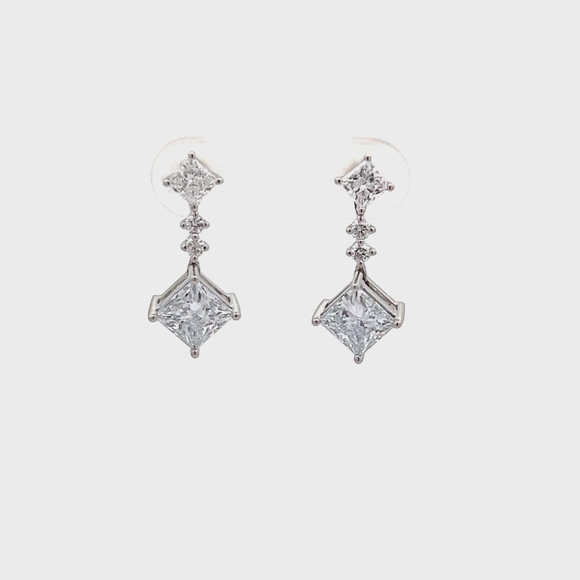 Princess Cut Lab-grown Diamond Dangle Earrings in Platinum