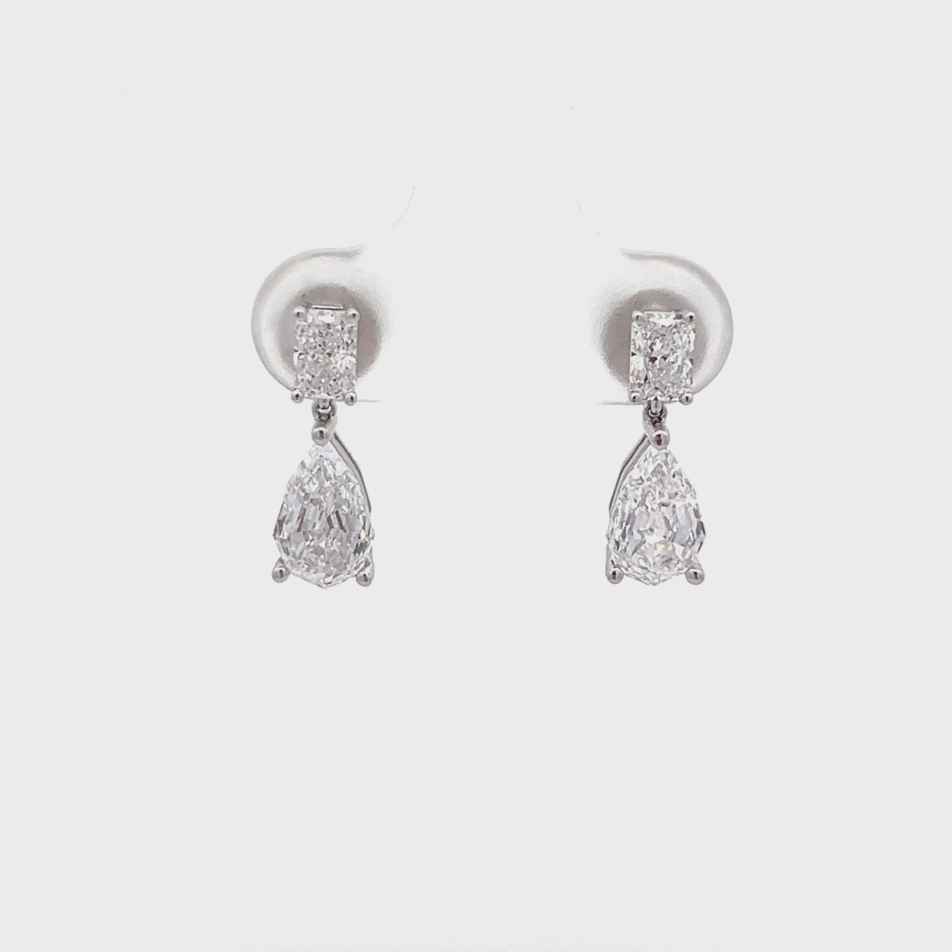 Step Pear lab-grown diamond earrings (D-F/VVS) total 2.04ct set with two radiant lab-grown diamonds total 0.52ct set in platinum